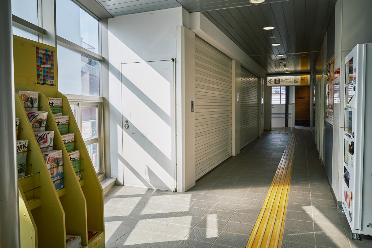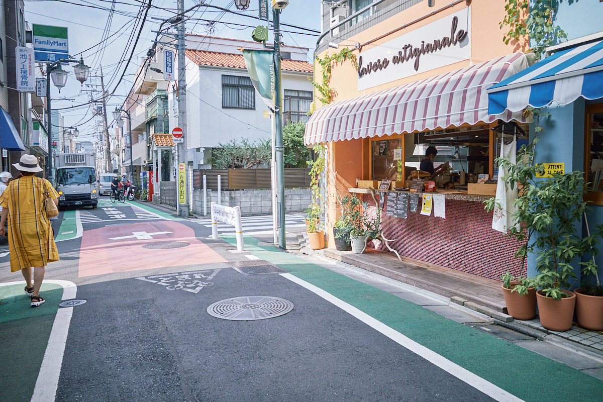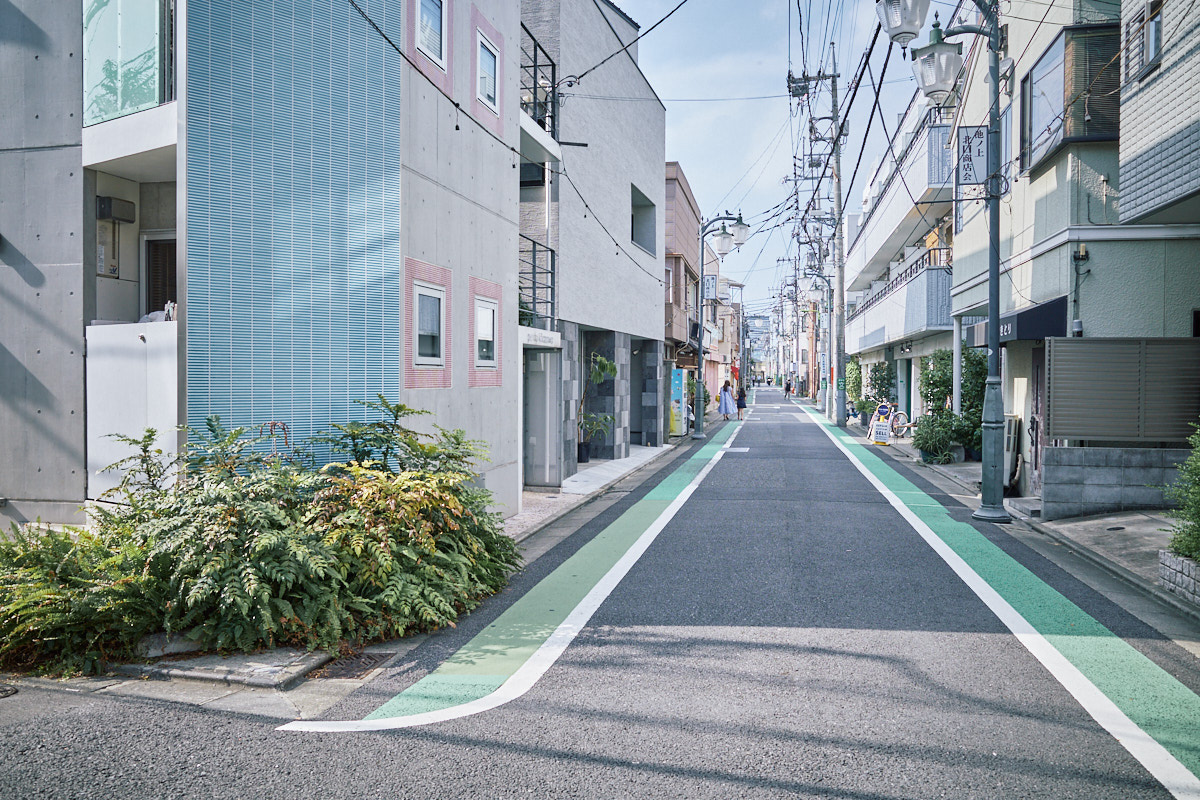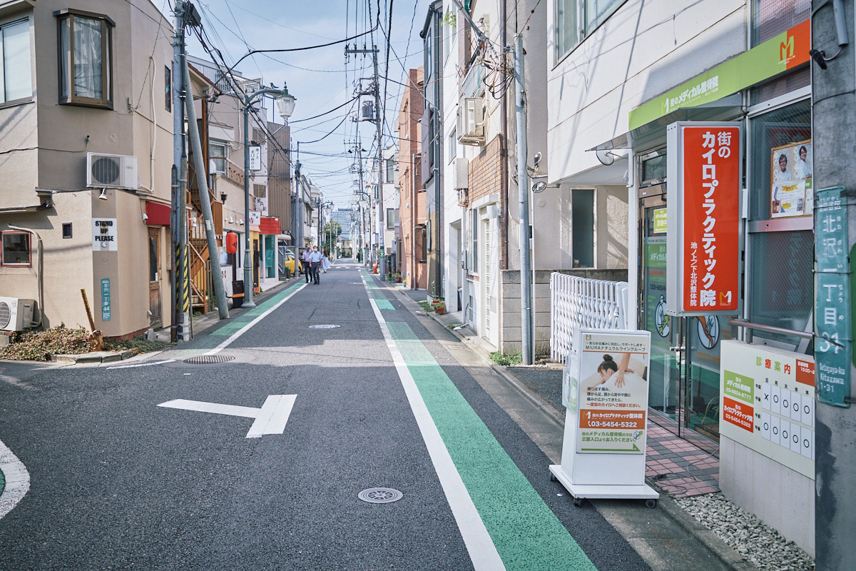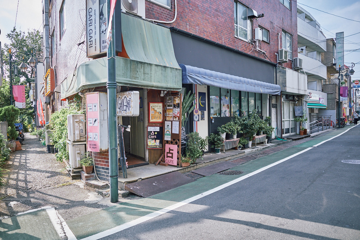 この景色が見えたら右へ(右側のシャッターは今は茶色いコーヒー屋さん)