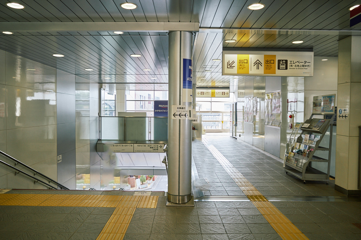 突き当りを右に曲がり、エレベーターか階段で下へ